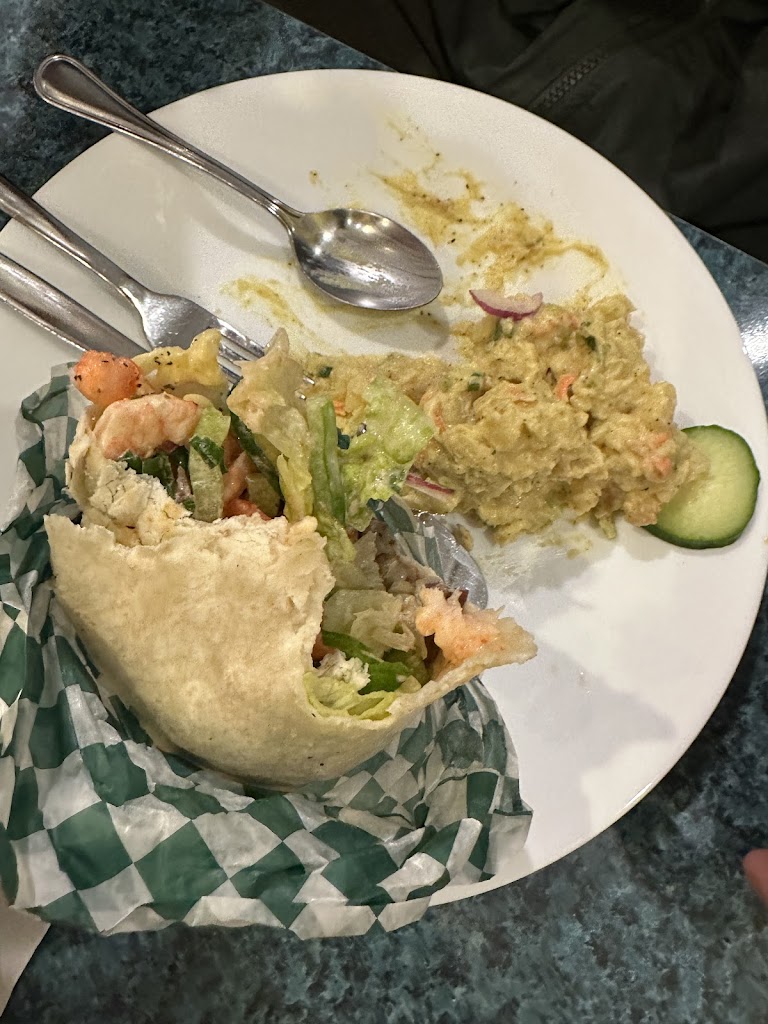 I had the Monty Cristo and it was melt in your mouth delicious. The fries were perfect!! Soooo good! My Husband had the spicy shrimp wrap. He liked it but wish it had more shrimp. Definitely get a sandwich with fries.
