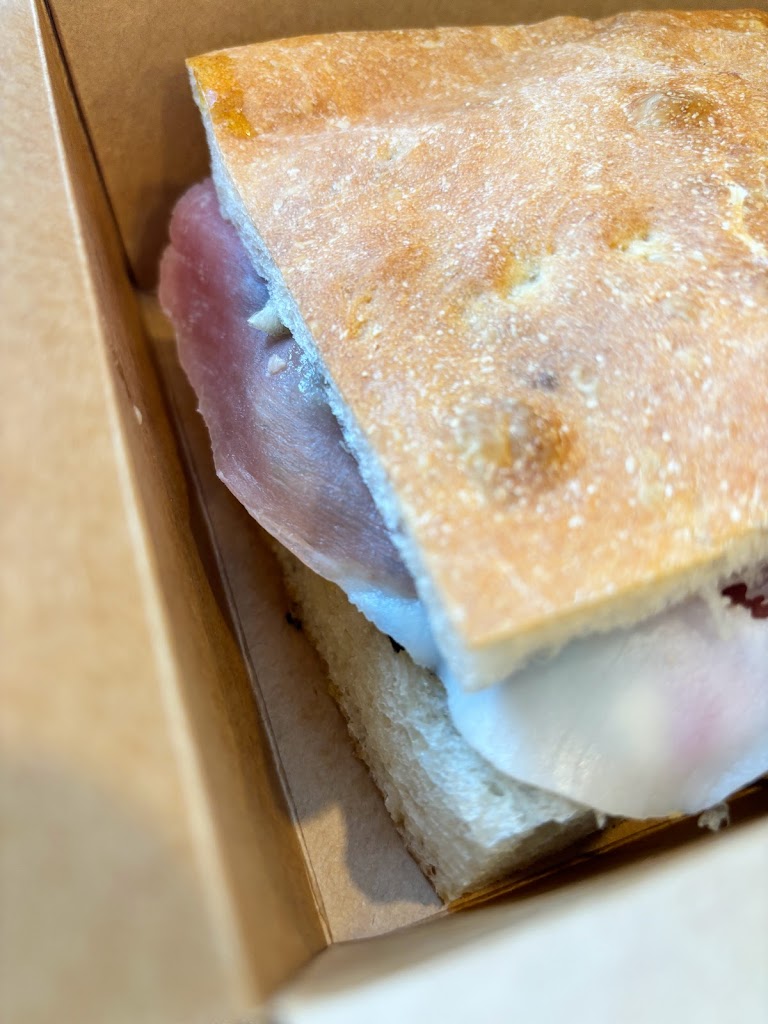 excellent focaccia sandwich bread was soft and fresh and the toppings were plentiful. Food