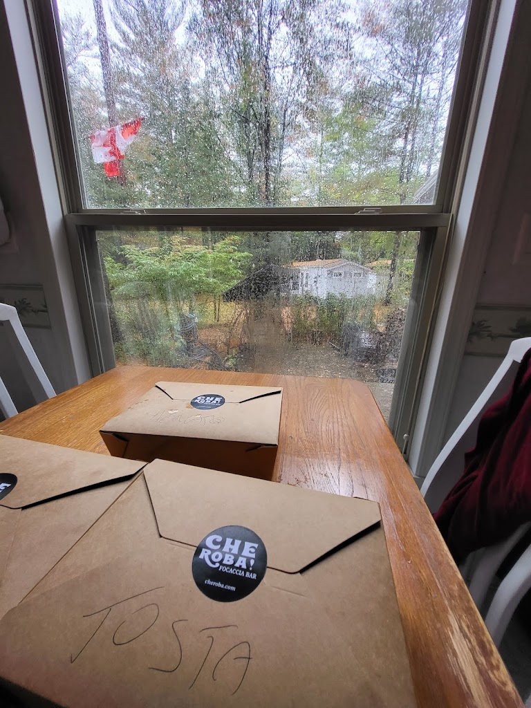 #cherobawasaga for lunch with Natalie today, although our lunch date was crashed by Gerry and Pat, that didn t put a damper on things, in fact it made for a lot of laughs. The food was excellent! So much so I ordered more and brought it home to share with mom! Amazing focaccia sandwiches!! Fit the large size take out container!! Pictured is the Pero. I could not get over the size of them! Finished off with some delicious homemade gelato and cappuccinos! I m surprised I m able to type this after the food coma I went into once getting home. Che Roba in Wasaga next to Pioneer is definitely worth the stop! 5 stars in my opinion! Thank you Antonella and Luca for the most excellent food and service!