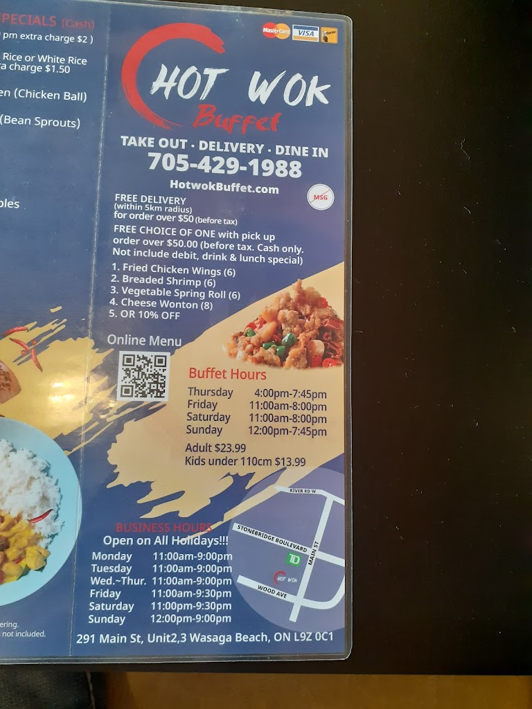 We are patrons of Bamboo Terrace and we re sad to see them go BUT the new owners now call Hot Wok Buffet are lovely and the food is amazing! They have dim sum, the shrimp dumplings are very tender and stuffed with shrimp. The sweet vinegar sauce served with it is perfect. The small egg drop soup is huge and excellent. They have steamed dishes for anyone with special dietary needs and the portions are almost impossible to finish. Well done and welcome to Wasaga Beach! Vegetarian options: Lots of options. Dietary restrictions: Great steamed dishes.