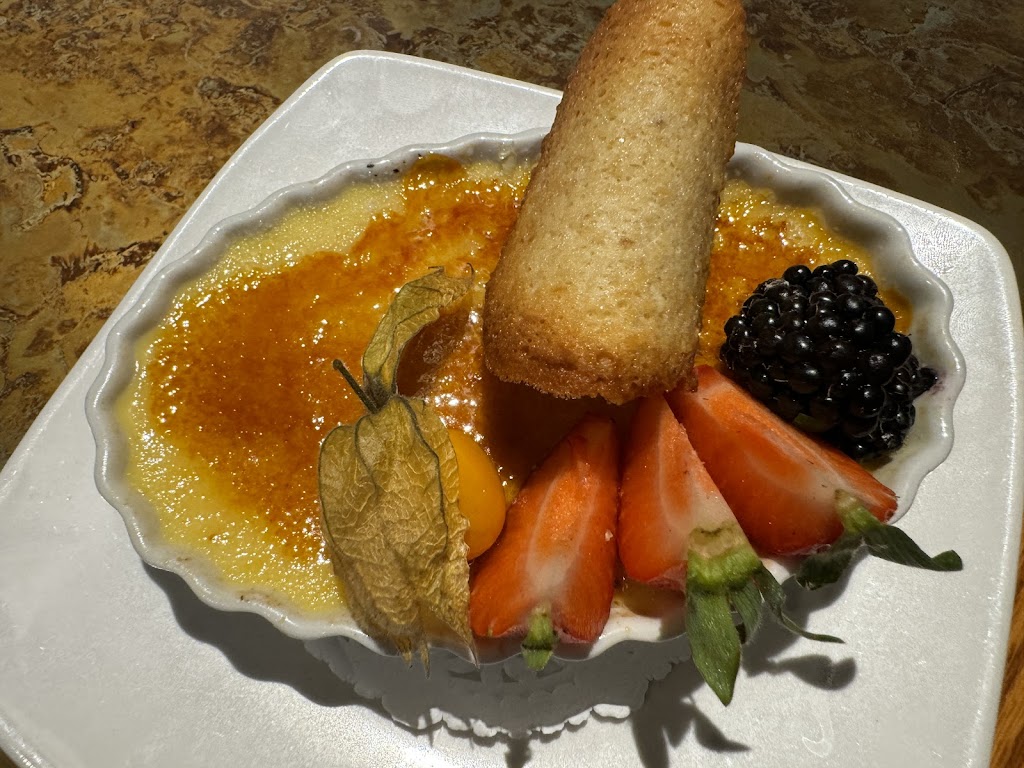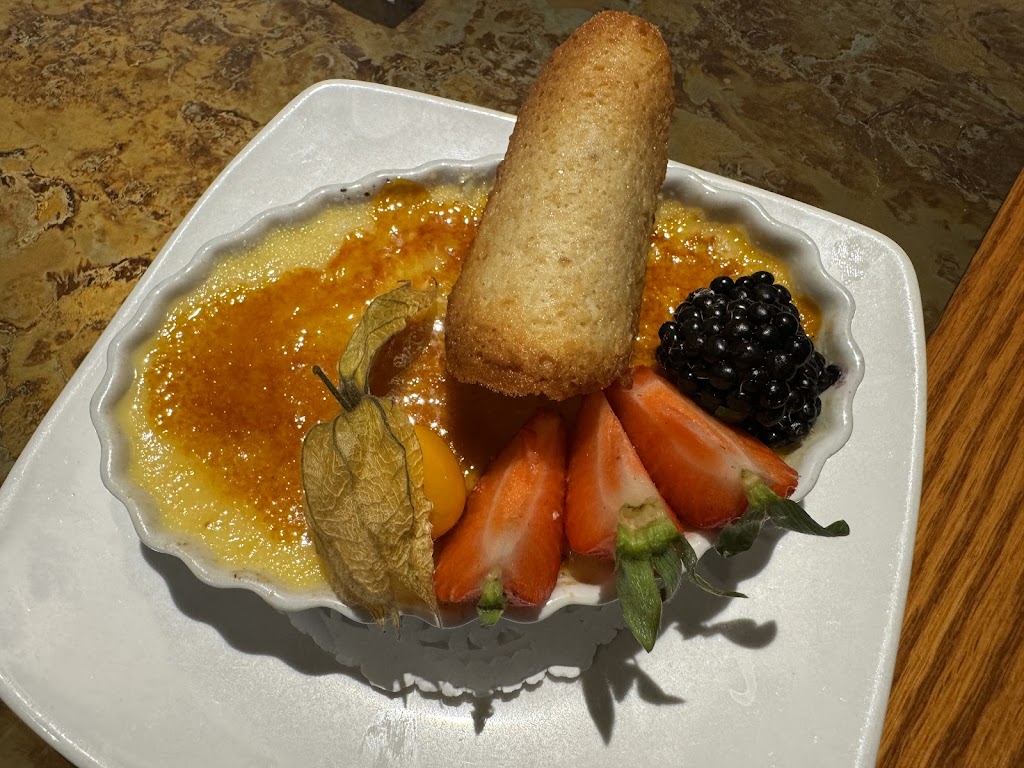 The vegetables that came with my salmon were so tasty I could have done without the salmon but of course I ate it all. They even made fingerling potatoes taste delicious. The strawberry creme brulee was the best Ive had. You do need GPS to find it.