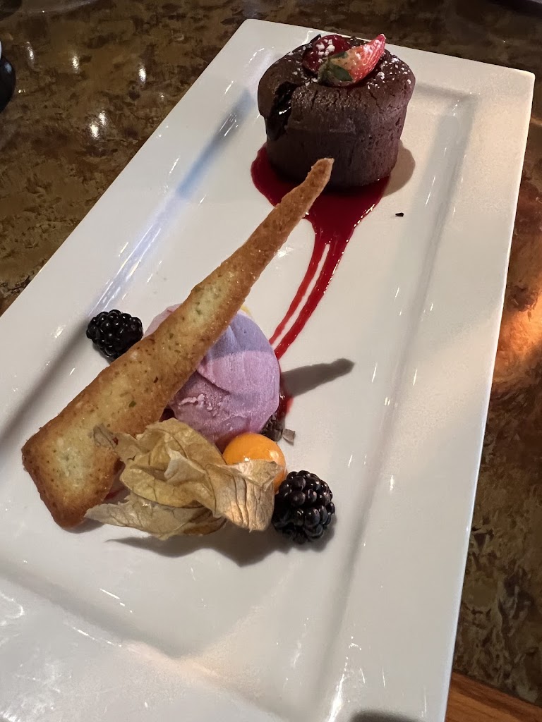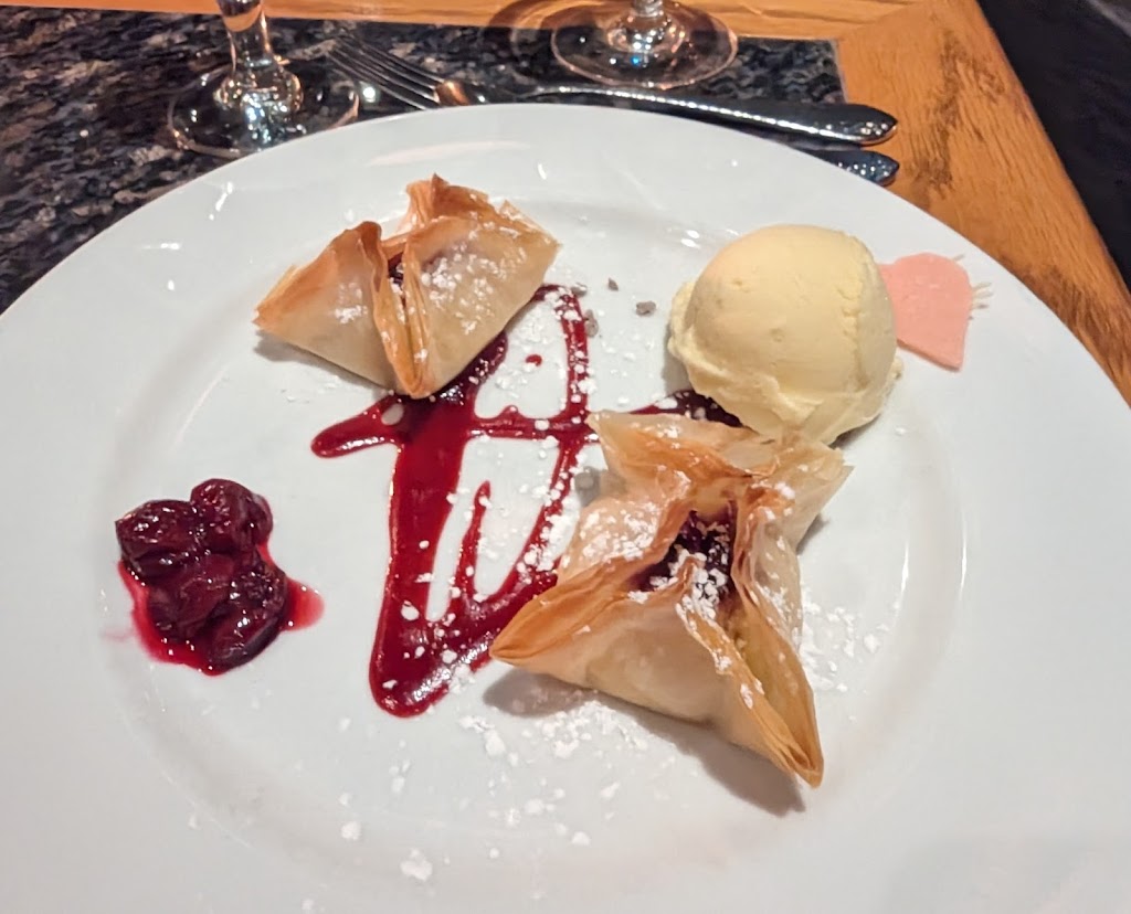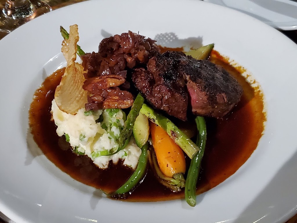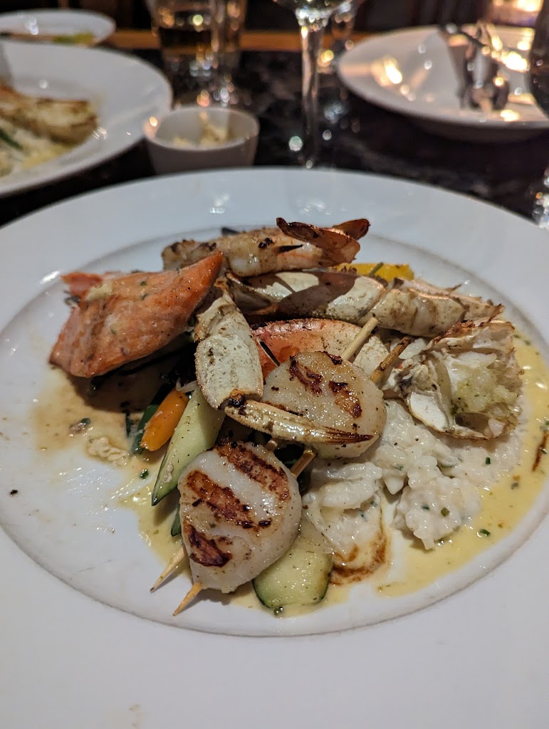 Wonderful, peaceful, romantic. We had the oysters and scallops to start, followed by sable fish and beef, yes, I know beef. All very nice. Our server Maria was all one could wish for.