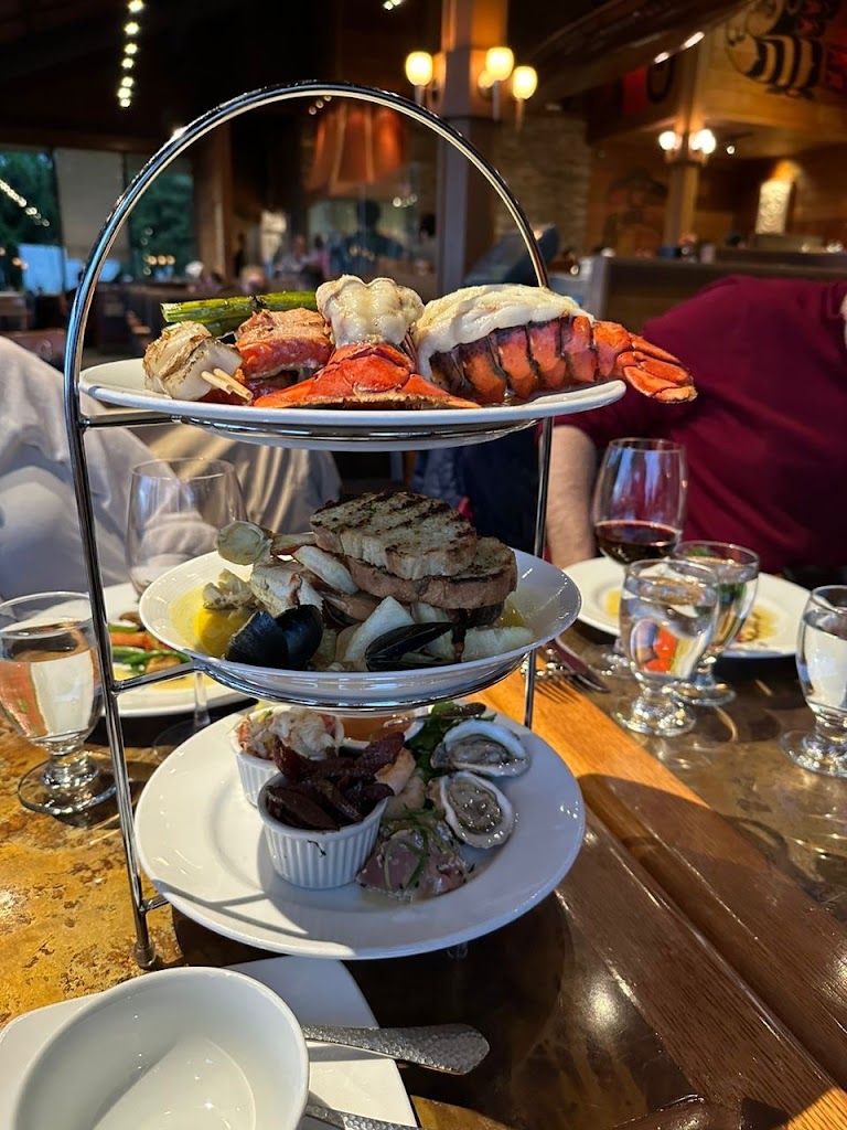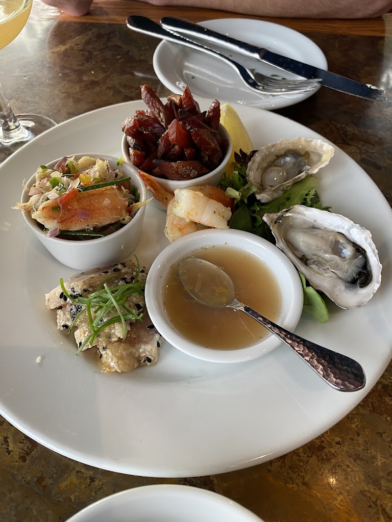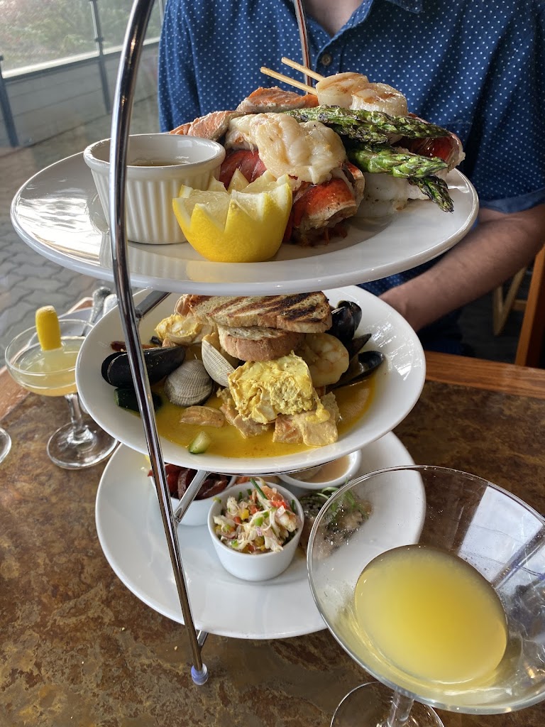 Seafood tower for two is so fun for a date/celebration! Everything tasted great, some things were particularly spectacular like the in-house candied salmon, the crab salsa, the butter for lobster and the sauce for the oysters. The view can’t be beat too. Service was the best I have had in a really long time. I’m really surprised that I have lived here for so long yet never heard of this place. Give it a try if you haven’t yet!