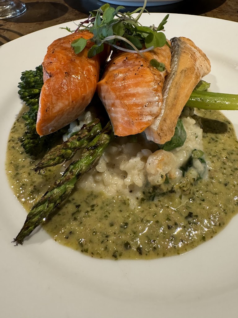 What a beautiful spot! Dinner was Lemon Parsley Pesto Salmon and Asparagus, Mushroom, Spinach and Gnocchi. Very friendly staff and the food was delicious! Highly recommend. Recommended dishes Lemon Parsley Pesto Crusted Wild Sockeye Salmon