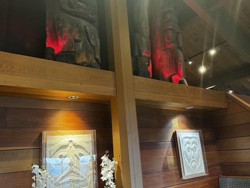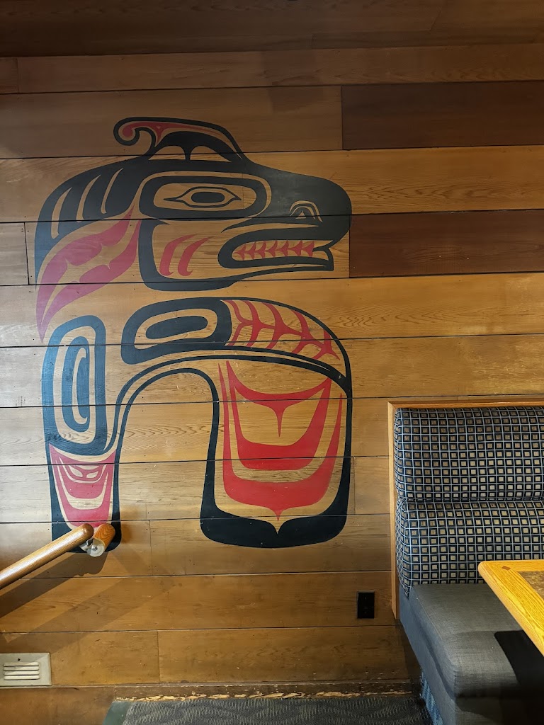 Tried the French Halibut special today. Very delicious!! The fish is tender with light sauce and vegetables ( the mango!) even it was raining but I could still see the DT view. Indigenous arts make this place even more interesting. I should take pictures next time for our dishes!