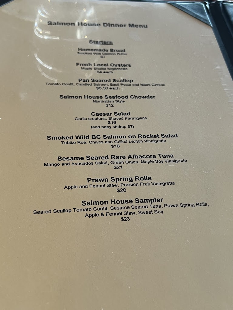 What Happened to the Salmon House? My husband and I have been regular customers of the Salmon House for the last 10 years. So many special occasions have been celebrated here including pregnancy news, birthdays, anniversaries and it has always been viewed as our special restaurant. We went out for dinner last night after having a babysitter for the first time in a year and the whole experience was completely underwhelming. Our server was fine but nowhere near the Salmon Houses usual standards of stellar professional servers who add to the evening. She seemed as if she did not want to be there. We asked for our meal to be sent in slow stages to savor the time away and first two appetizers came together immediately. Ok no problem - although caesar salad would have been better eaten on its own before being presented with a hot appetizer. She had assured us our main would come after being requested but no sooner had the dishes cleared our main was on the table. The restaurant was not busy so really no need to scoot us out in 45 minutes. Besides the disappointing service - the current state of inflation was not hidden at all. Prices have increased but portions are nowhere near what they used to be. Salmon candy from the salmon house sampler eliminated. Butter and humous for bread (which is an additional surcharge) eliminated. Salmon - miniscule portion and even the vegetables have been reduced. Dessert - completely scaled back - less phylo, less fruit and even less to the sugar ornament which used to decorate half the plate for the cheesecake ravioli. The cosmos had nearly zero vodka in them and were an expensive glass of cranberry juice. Consumers understand how much prices have gone up and do expect to meet those increases on the menu but a restaurant like the salmon house should not be like the new box of cereal with a huge price increase but now half empty. Sadly, not sure all our memories at this restaurant will be enough to draw us back at the current state of operation.