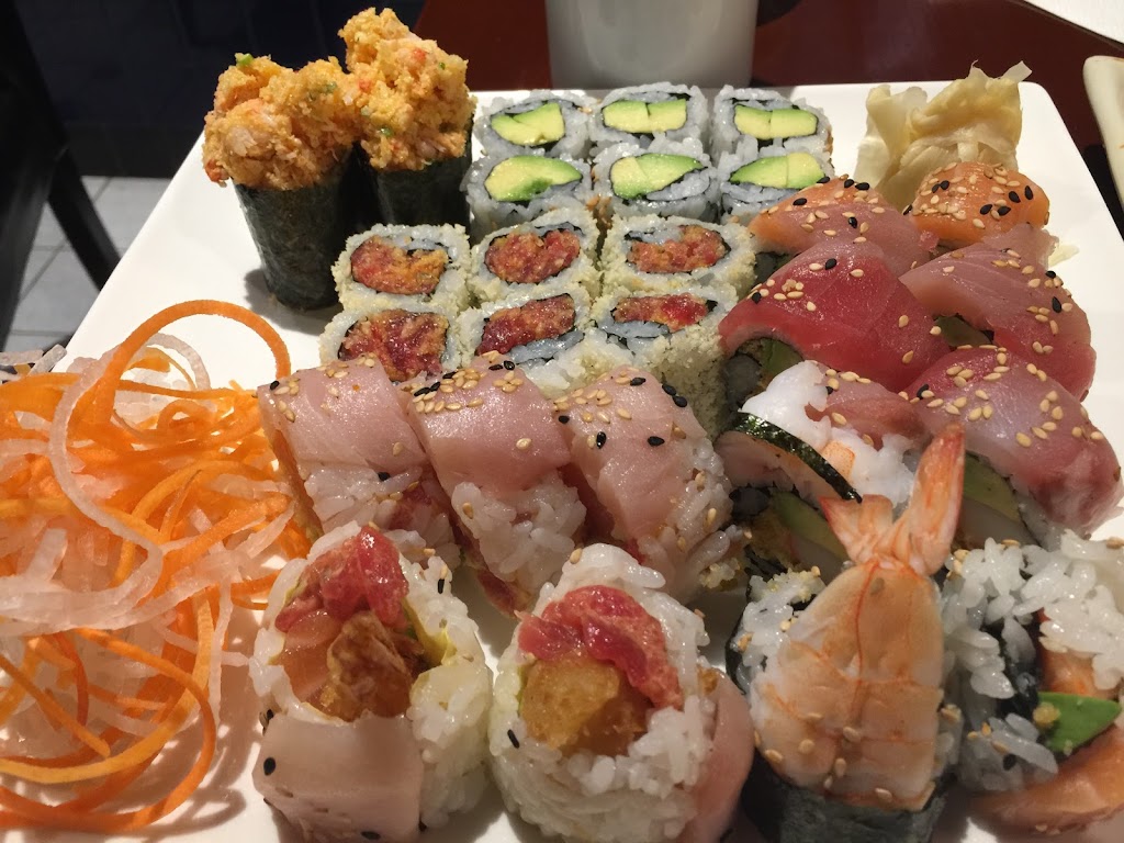 The sushi is excellent and the prices are very reasonable. It is very fresh and you can order it for pick up. There is no delivery and the spot is not very nice, within a mall, but the sushi is very good. Get some for pick up or to go and you will be very pleased.