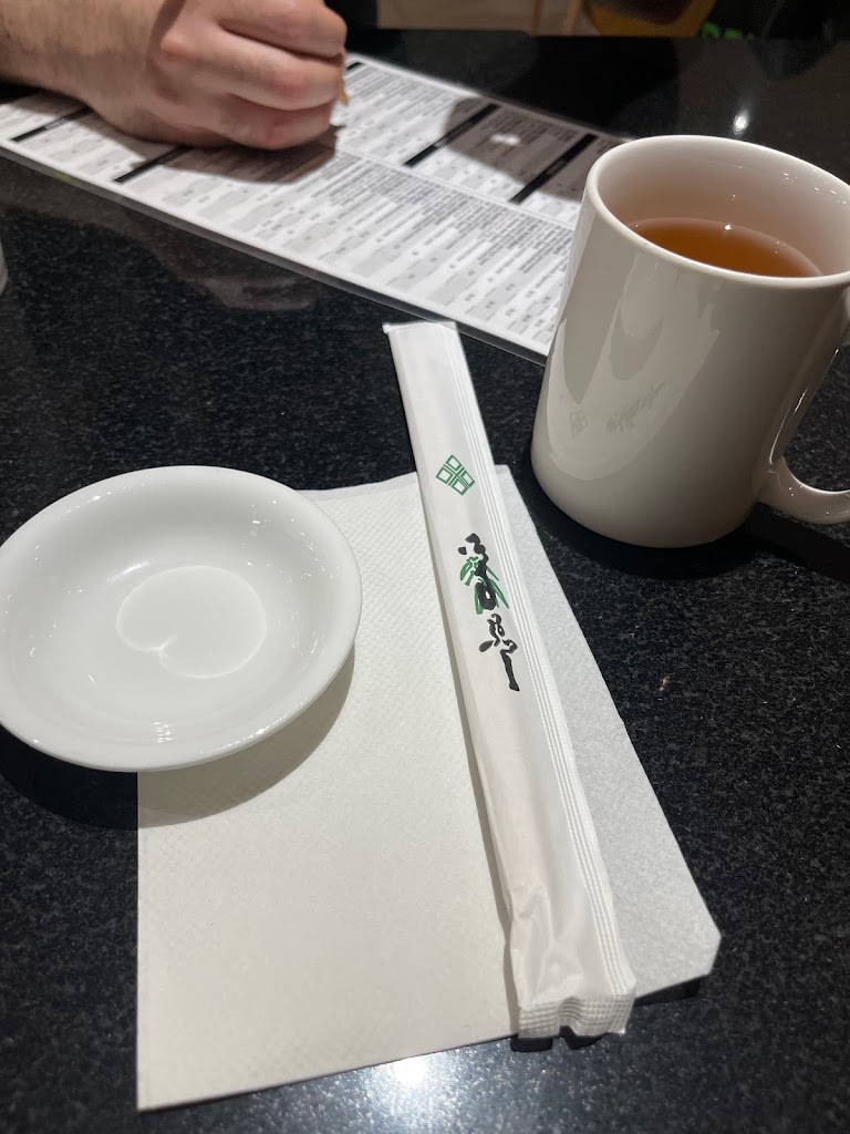 The restaurant is in a food court corner. Friendly staff, fast service. The food is fresh and hot. Good average price. For 2 person about $62. They serve hot tea. I enjoy the chicken dumplings the most. I will come back.