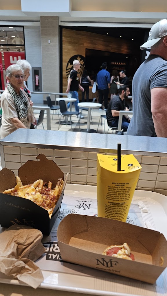 Mall outlet so not much of a say about the vibe but four stars to NYF for coming up with a eco friendly option to plastic glasses for pop. It s called a funky glass and I wish more stores would use something like this. Had veggie fries and they were worth it.