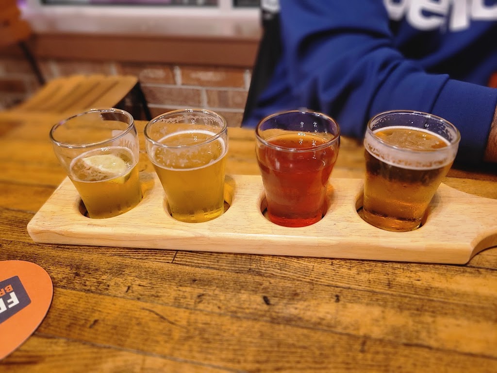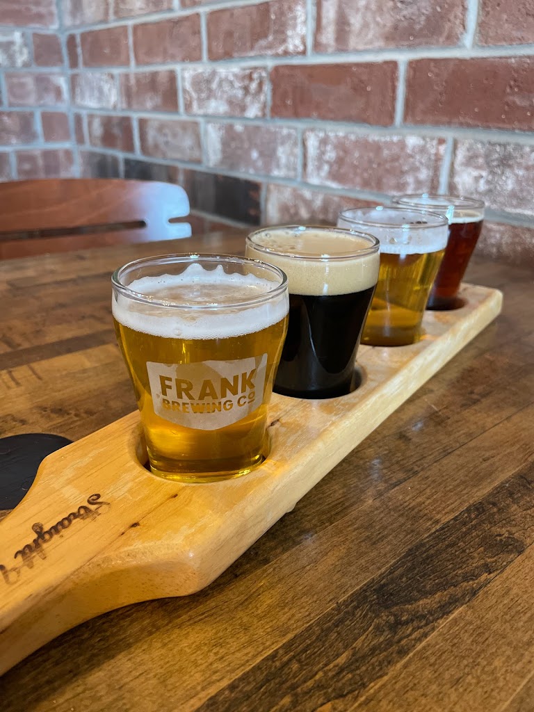 I recently visited Frank Brewing Co. and I must say, I was thoroughly impressed with my experience. From the moment I walked in, the ambience was inviting and cozy. But the highlight of my visit was undoubtedly the food and beer flight. The food was delicious, with a variety of options to choose from that paired perfectly with the different beers. The beer flight was truly exceptional, with a range of different brews to try, each one unique and full of flavor. Cream soda was my least liked flavor. Overall, I had a fantastic time. The pizza and beer were both excellent, and the staff were friendly and knowledgeable. I would highly recommend this brewery to anyone looking for a fun, laid-back atmosphere and some great beer and pizza.
