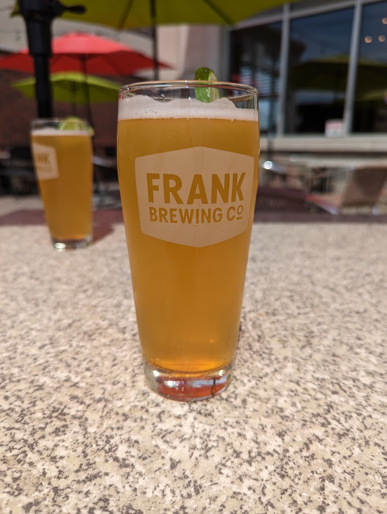 Frank brewing co. Incredible craft beer. Enjoying a day tripper right now. Brewed with 95 lbs of fresh hops from Redman hop farm. Drink local!!